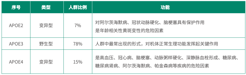 三種亞型:APOE2、APOE3、APOE4