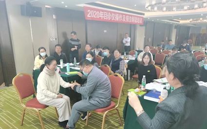 培訓(xùn)除了延續(xù)前兩期目診理論與實(shí)操訓(xùn)練課程外,還設(shè)立了醫(yī)師現(xiàn)場(chǎng)診療與目診儀報(bào)告對(duì)比環(huán)節(jié),由河南中醫(yī)藥大學(xué)中醫(yī)診斷教研室何磊博士擔(dān)任坐診醫(yī)師,通過“望、聞、問、切”為在場(chǎng)學(xué)員進(jìn)行診療,診療結(jié)果與學(xué)員眼象報(bào)告高度一致,學(xué)員紛紛表示贊嘆。