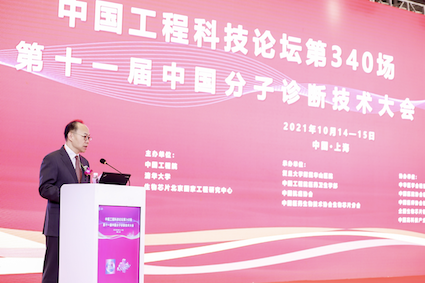 2021年10月14日,“中國工程科技論壇第340場第十一屆中國分子診斷技術大會”在上海市盛大開幕。會議由中國工程院、清華大學、生物芯片北京國家工程研究中心主辦,復旦大學附屬華山醫(yī)院、中國工程院醫(yī)藥衛(wèi)生學部、中國抗癌協(xié)會、中國醫(yī)藥生物技術協(xié)會生物芯片分會承辦,中華醫(yī)學會檢驗醫(yī)學分會、中國醫(yī)師協(xié)會檢驗醫(yī)師分會、中國醫(yī)院協(xié)會臨床檢驗管理專業(yè)委員會、全國生物芯片標準化技術委員會、中國高科技產(chǎn)業(yè)化研究會協(xié)辦。