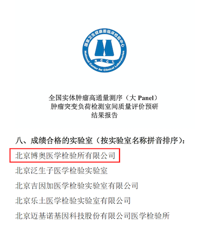 近日,國(guó)家衛(wèi)生健康委臨床檢驗(yàn)中心(NCCL)發(fā)布了2022年“全國(guó)實(shí)體腫瘤高通量測(cè)序(大Panel)腫瘤突變負(fù)荷檢測(cè)室間質(zhì)量評(píng)價(jià)預(yù)研”報(bào)告。博奧晶典旗下北京博奧醫(yī)學(xué)檢驗(yàn)所以滿分成績(jī)通過(guò)了項(xiàng)目評(píng)價(jià)。充分體現(xiàn)了博奧腫瘤高通量測(cè)序產(chǎn)品的科學(xué)嚴(yán)謹(jǐn),為臨床腫瘤醫(yī)生治療決策提供更可靠的依據(jù)。