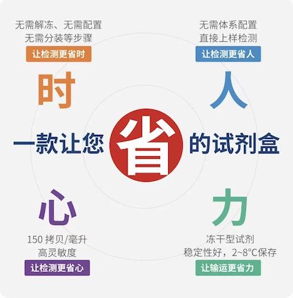 采用凍干微球?qū)@夹g(shù),將擴(kuò)增反應(yīng)所需試劑提前預(yù)混凍干,破局冷鏈運(yùn)輸,讓儲運(yùn)更省力節(jié)能。