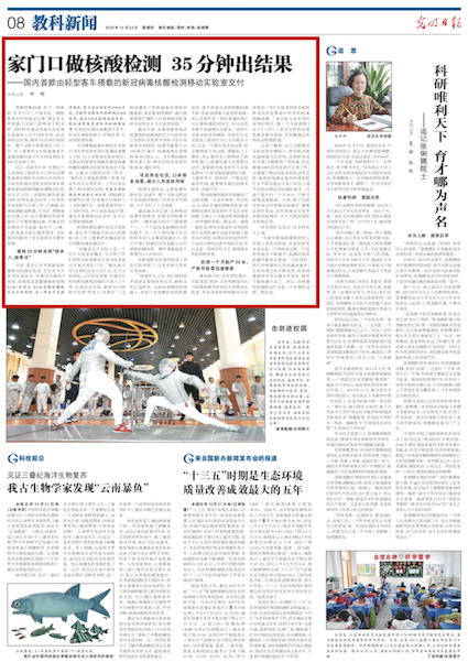 截至目前,全集成新型冠狀病毒現(xiàn)場檢微流控芯片分析系統(tǒng)已獲得4項發(fā)明專利和5項實用新型專利授權(quán),檢測靈敏度可達(dá)150拷貝/毫升,檢測速度比常規(guī)PCR快3倍以上。為方便檢測結(jié)果快速上報,移動實驗室還同時配備5G通信系統(tǒng)。