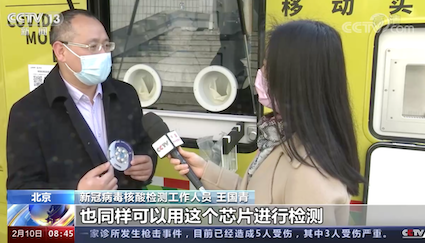 ? ? ? “這個芯片相當于一個微型的實驗室它集成了核酸的提取、核酸的擴增檢測,在芯片里面全自動完成,45分鐘以后,我們就可以在系統(tǒng)里看到結(jié)果?!北本┎W晶典生物技術(shù)有限公司副總裁王國青表示。信息結(jié)果將同步推送到健康寶,除了人的樣本以外,環(huán)境樣本也可以用全集成芯片進行檢測。