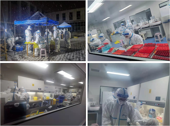 眾志成城的背后,是博奧抗疫團(tuán)隊(duì)始終堅(jiān)持在緊急事件發(fā)生時(shí)保持24小時(shí)待命;是遇到疫情,第一時(shí)間集結(jié)人員物資,火速馳援;是迅速投身到各地核酸檢測(cè)工作,以快速、高質(zhì)量的篩查服務(wù)為全國(guó)各地疫情防控做出突出貢獻(xiàn)。武漢、北京、大連、新疆、青島、上海、成都、南京、河北、廣東、鄭州、天津、安慶......處處都有博奧抗疫團(tuán)隊(duì)勠力同心的身影。