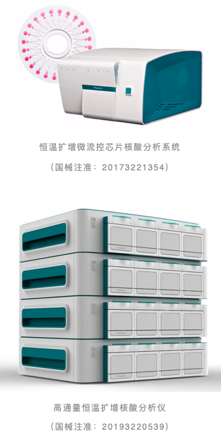 應(yīng)用以上兩項國家標(biāo)準(zhǔn)技術(shù),博奧首創(chuàng)恒溫擴增微流控病原體核酸檢測芯片系統(tǒng),并通過教育部組織的專家技術(shù)鑒定“項目技術(shù)達到國際領(lǐng)先水平,填補了國內(nèi)微納生物醫(yī)學(xué)檢測科學(xué)儀器和醫(yī)療儀器的空白”。早在2015年和2016年,博奧恒溫擴增微流控芯片核酸分析儀和呼吸道病原菌核酸檢測試劑盒先后通過國家藥品監(jiān)督管理局創(chuàng)新醫(yī)療器械特別審批,雙雙獲得了三類醫(yī)療器械注冊證書。國家藥品監(jiān)督管理局對該產(chǎn)品給予了“國內(nèi)首創(chuàng),具有顯著的臨床應(yīng)用價值”的評價。由此改變了呼吸道感染診治領(lǐng)域長期存在的“盲人摸象”、“經(jīng)驗用藥”的局面,引領(lǐng)國內(nèi)呼吸道病原菌檢測正式進入“精準(zhǔn)時代”。