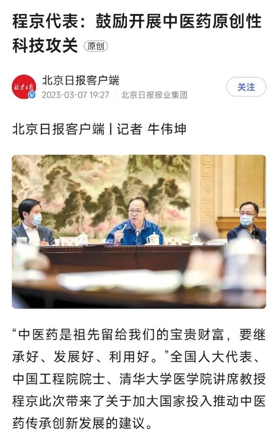 聚焦兩會 | 程京代表:切實加大中醫(yī)藥國家投入,加快中醫(yī)藥傳承創(chuàng)新發(fā)展