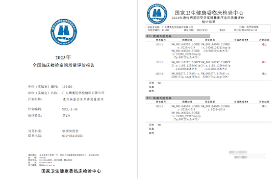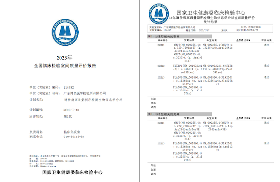 近日,國家衛(wèi)生健康委臨床檢驗(yàn)中心(NCCL)發(fā)布了關(guān)于《2023年遺傳病基因變異高通量測序室間質(zhì)量評價(jià)結(jié)果》,博奧晶典旗下廣東博奧醫(yī)學(xué)檢驗(yàn)所以滿分成績通過。這是繼2023年9月博奧晶典滿分通過《遺傳病高通量測序檢測生物信息學(xué)分析室間質(zhì)評》后的又一個(gè)滿分,再次證實(shí)博奧晶典在遺傳病高通量測序檢測領(lǐng)域優(yōu)異的質(zhì)量水平。