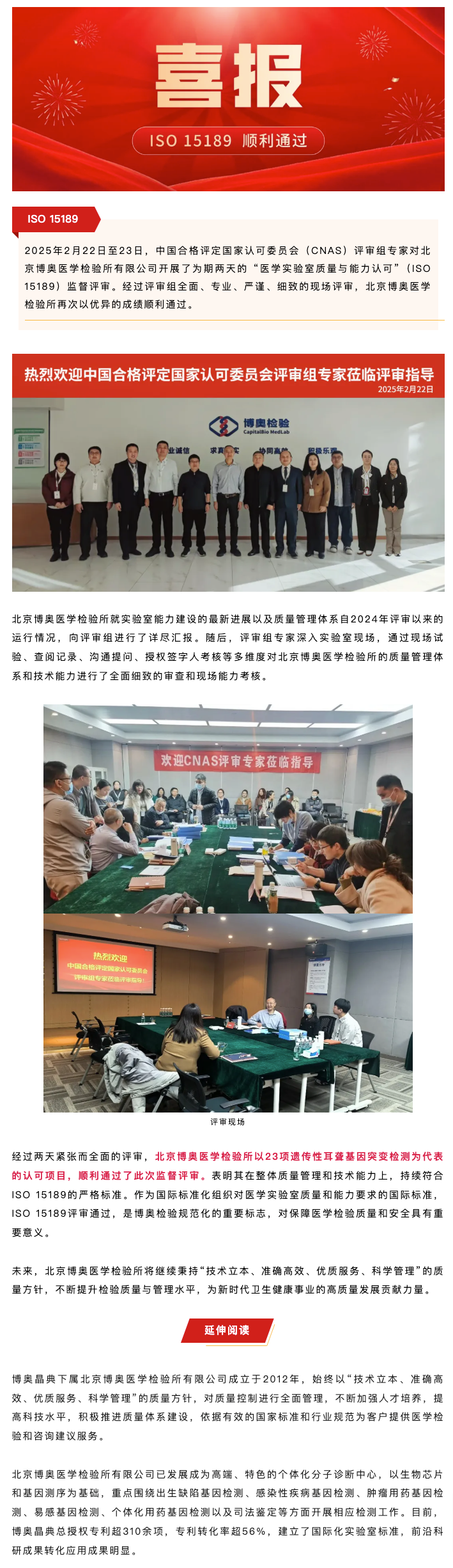 喜報丨博奧晶典旗下北京博奧醫(yī)學檢驗所順利通過ISO 15189醫(yī)學實驗室認可現(xiàn)場評審